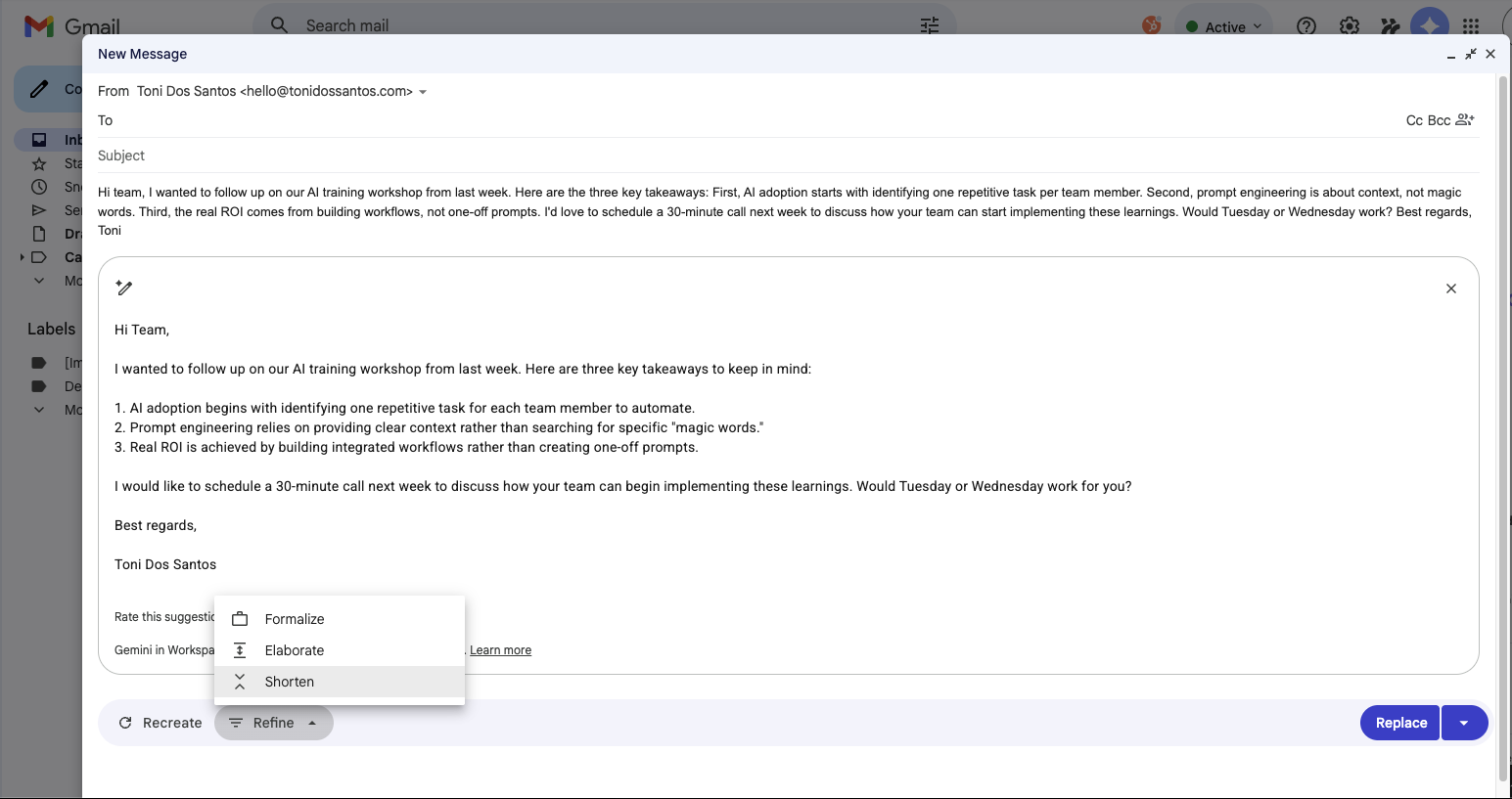 Gemini in Gmail for Marketing Communication